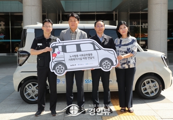 (경인뷰) 기아㈜ 고객서비스사업부 의왕서비스센터가 노사합동 ‘사랑나누기 차량 기증 사업’의 일환으로 군포시에 레이 차량을 기증했다.