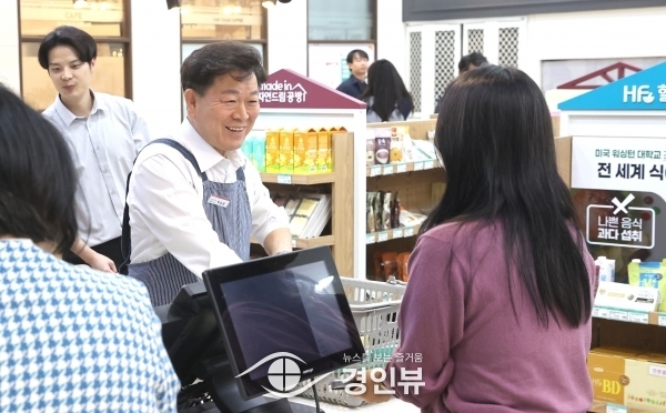 (경인뷰) 박승원 광명시장은 지난 25일 저녁 철산동 소비자생활협동조합 매장에서 일일 직원 체험에 나섰다.