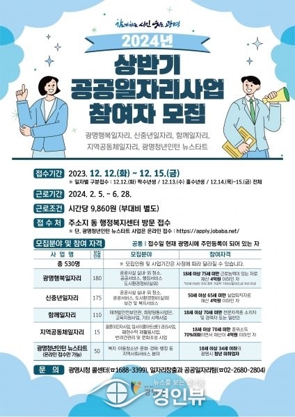 (경인뷰) 광명시가 2024년 공공일자리사업에 시동을 걸었다.