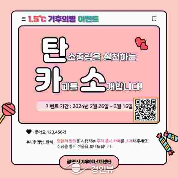 (경인뷰) 광명시는 2월 26일부터 3월 15일까지 1.5℃ 기후의병 탄·카·소 이벤트를 진행한다.