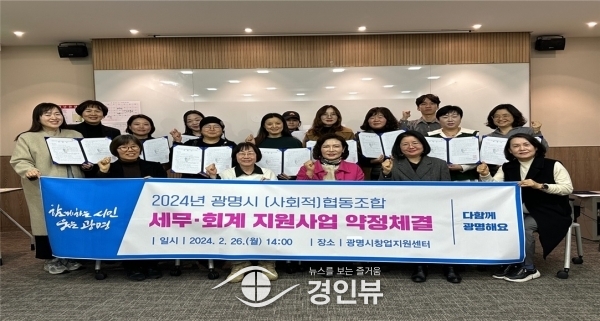 (경인뷰) 광명시는 지난 26일 광명시창업지원센터에서 17개 협동조합과 세무·회계 지원을 위한 약정을 체결했다.