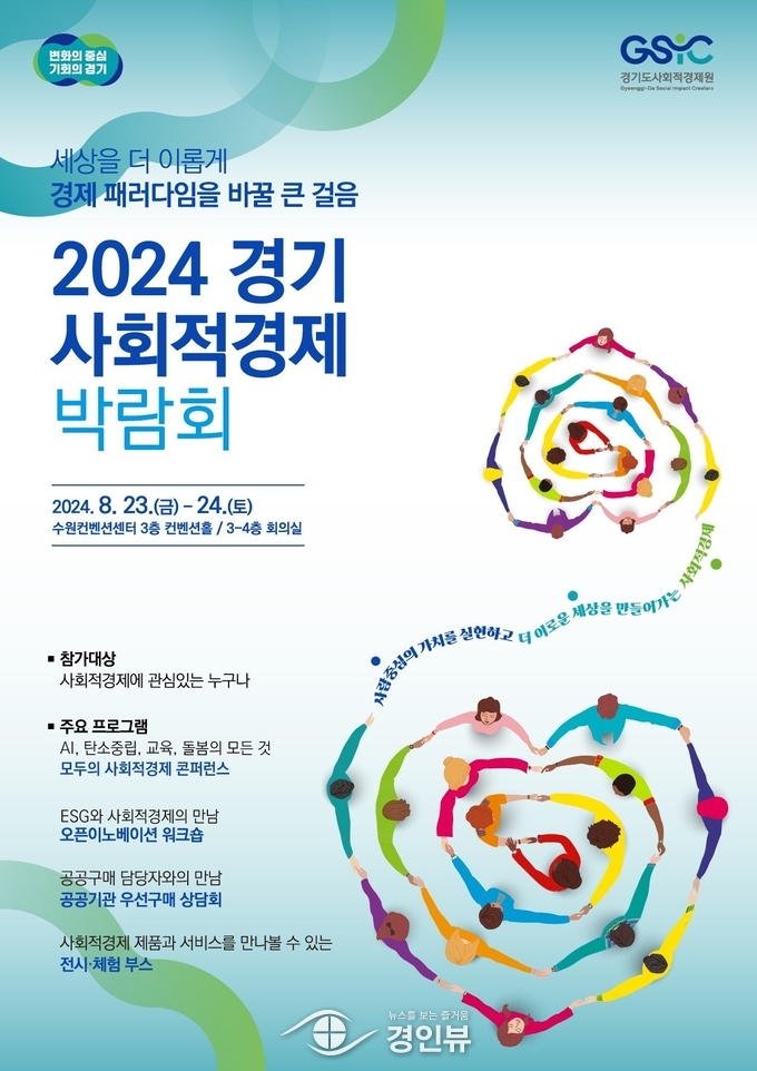 경기도와 경기도사회적경제원은 오는 23일부터 24일까지 수원컨벤션센터에서 ‘2024 경기 사회적경제 박람회’를 개최한다.