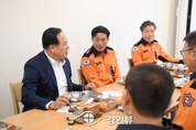 (경인뷰) 이권재 오산시장이 지난 5일 오산소방서를 방문해 각종 사건사고와 재난의 최일선 현장에 있는 소방관들의 노고를 격려했다. 이번 방문은 화재, 교통사고 등 사회적 재난뿐만 아니라 대설 등 각종 자연 재난에도 시민의 생명과 안전을 위해 혼신의 노력을 다하는 소방공무원의 노고를 격려하고 감사의 마음을 전하기 위해 마련됐다. 이날 이권재 오산시장은 오산소방서 직원식당에서 소방대원들과 함께 식사를 하고 대화를 나누며 현장 활동에 대한 애로사항을 청취하고 오산시의 안전을 위한 소통의 시간을 가졌다. 이번 방문에서 이권재 시장은 “지난달 31일 문경시 육가공 공장 화재로 순직한 두 소방 영웅의 숭고한 희생을 잊지 않겠다 위험한 재난 현장에서 항상 시민의 안전을 위해 힘쓰는 소방공무원의 노고에 깊은 감사를 드린다”고 전했다. 정찬영 오산소방서장은 “소방에 대한 관심과 애정을 가지고 대원들을 격려해주신 시장님께 진심으로 감사드리며 오산시의 안전을 위해 각종 재난에 대한 예방과 현장 활동에 만전을 기하겠다”고 전했다.