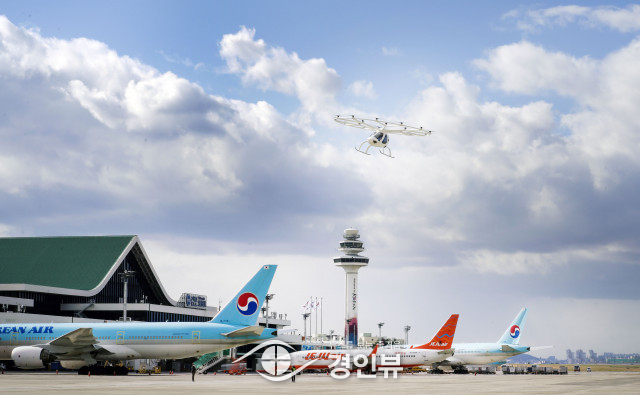 ▲ 김포국제공항에 마련된 행사장 상공을 선회 비행하는 UAM