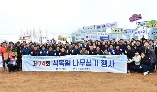 인천시(시장 박남춘)와 부평구(구청장 차준택)는 지난 3월 30일 오전 10시 부평구 십정동 535-2번지 십정녹지에서 녹색도시 인천 만들기 일환으로 '제74회 식목일 나무심기 행사'를 공동으로 개최하였다.