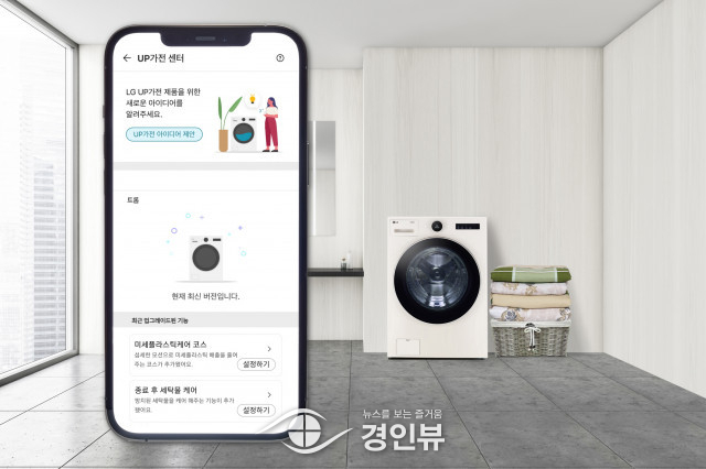 LG전자는 지난해 1월 UP가전 선포 후 ‘종료 후 세탁물 케어’, ‘펫케어’ 등 세탁기를 포함해 24종의 UP가전을 출시했고 150개 이상의 업그레이드 콘텐츠를 배포했다. 고객이 LG 씽큐 앱 내 ‘UP가전 아이디어 제안’과 각종 이벤트를 통해 제안한 업그레이드 아이디어는 6000건이 넘는다. LG전자가 UP가전 선포 후 배포한 업그레이드 콘텐츠 중 고객이 제안한 아이디어를 기반으로 개발한 것은 절반 이상이다.