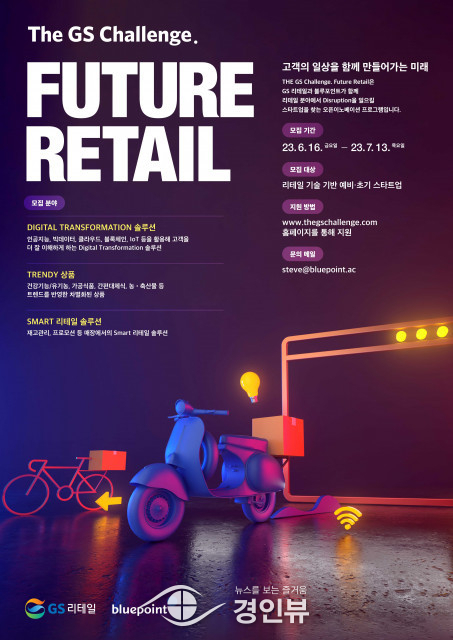 GS리테일과 블루포인트는 7월 13일(목)까지 오픈 이노베이션 프로그램 ‘더 지에스 챌린지 퓨처 리테일(The GS Challenge. Future Retail)’에 참여할 스타트업을 모집한다.