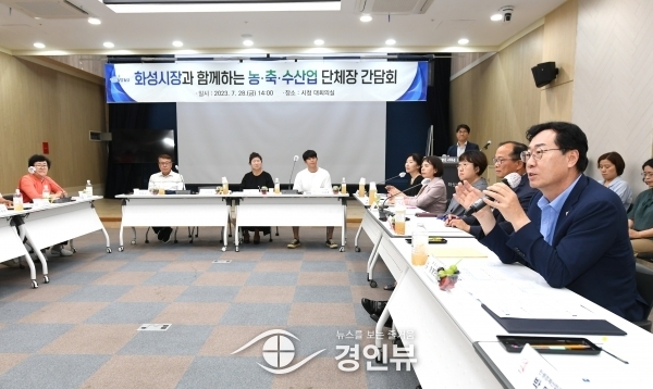 (경인뷰) 화성시가 민선8기 1주년을 맞아 28일 시청 대회의실에서 농축수산업 단체장과 1년간의 성과를 공유하고 농축어업인들의 의견을 수렴하는 농정간담회를 가졌다.