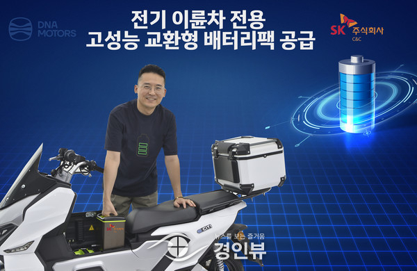 SK㈜ C&C(사장 윤풍영)는 9일 국내 대표 전기 이륜차 전문 기업 DNA모터스에 고성능 교환형 배터리팩을 공급한다고 밝혔다.