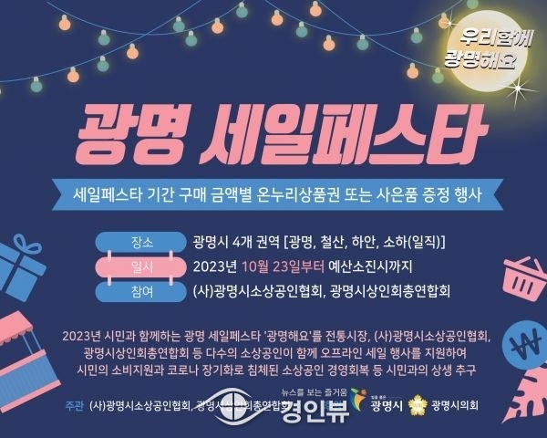 (경인뷰) 광명시는 지역 경제를 활성화하고자 23일부터 광명세일페스타 “광명해요”를 개최한다고 밝혔다.