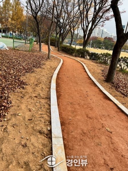 (경인뷰) 광명시가 최근 건강 명소로 주목받고 있는 황톳길을 추가 조성해 시민들의 호응을 얻고 있다.