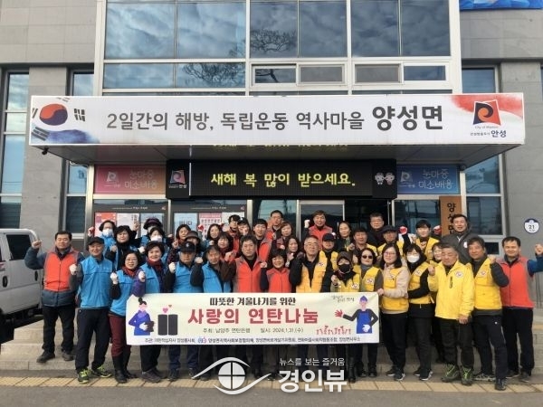 이날 진행된 봉사활동은 남양주 연탄은행에서 연화마을 사회적협동조합을 통해 1,500장을 기부로 진행됐으며 양성면에서는 3개 단체가 연탄보일러를 사용하는 3가구에 각 500장의 연탄을 배달했다.