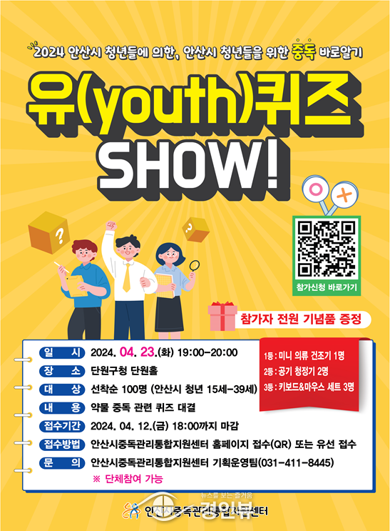 (경인뷰) 안산시는 오는 4월 23일 19시 단원구청 단원홀에서 “중독 바로 알기, 유퀴즈쇼”를 개최한다고 13일 밝혔다.
