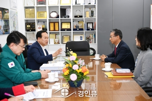 이날 이권재 오산시장은 김주영 경인지방병무청장과 봉급인상을 비롯한 사회복무제도 개선내용과 교육 및 복무 관리 강화 계획에 대한 의견을 나누고 지역 내 다수 사회복무요원 소집 대기자들이 빠른 시일내 복무를 시작해 사회진출을 할 수 있도록 사회복무요원 배정을 확대해 주길 요청했다.