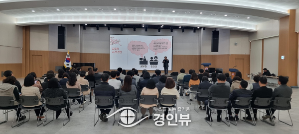 (경인뷰) 군포시는 15일 10시, 오후 2시 2회차로 나뉘어 시청 대회의실에서 6급 공무원 160명을 대상으로 민관이 소통하고 공감하는 시정 협치 구현을 위한 공직자 민관협치 역량 강화 교육을 실시했다.