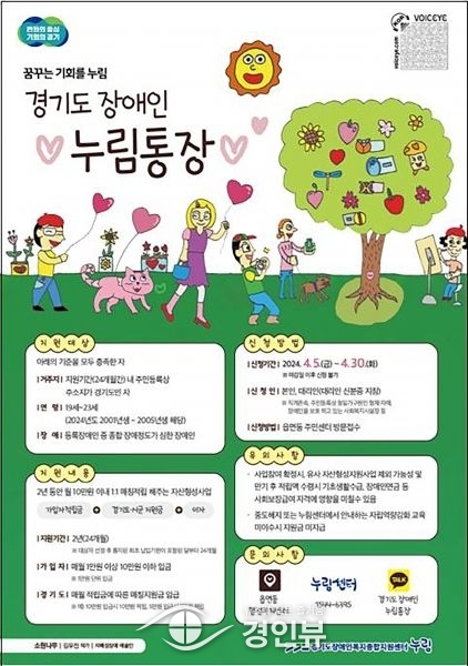 (경인뷰) 성남시는 오는 4월 5일부터 30일까지 ‘장애인 누림통장 사업’ 참여 신청을 받는다.