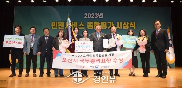 (경인뷰) 오산시는 지난 4일 정부서울청사 대강당에서 ‘2023년 국민행복민원실’국무총리 표창을 수상했다.