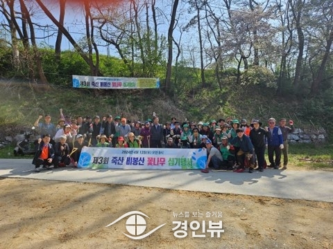 (경인뷰) 지난 4월 13일 죽산면 산악인연합회는 죽산면 기관사회단체회원, 죽산면사무소 직원 등과 함께 죽산면 비봉산 등산로 입구에서 제3회 죽산 비봉산 꽃나무심기 행사를 개최했다.