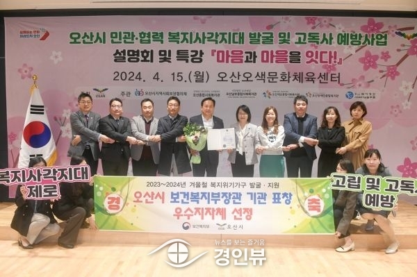 (경인뷰) 오산시는 2023-2024년 겨울철 복지 위기가구 발굴 지원 우수 지자체 평가에서 보건복지부 장관 표창을 수상했다고 15일 밝혔다.