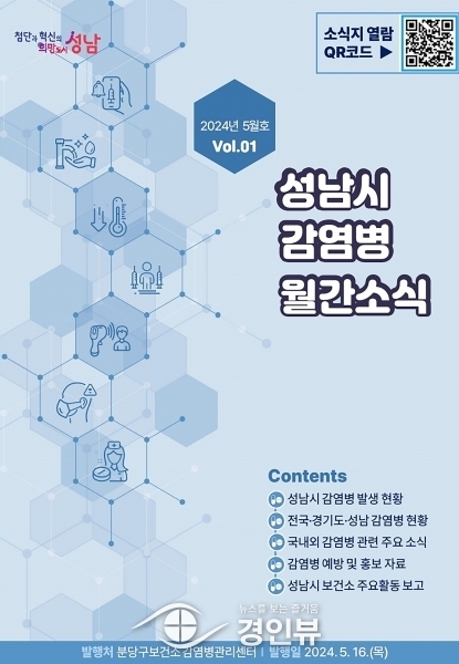 (경인뷰) 성남시는 감염병의 월별 국내 현황 및 성남시 관내 감염병 증감 추이 등을 담은 ‘성남시 감염병 월간소식’ 5월 창간호를 발간했다고 21일 밝혔다.