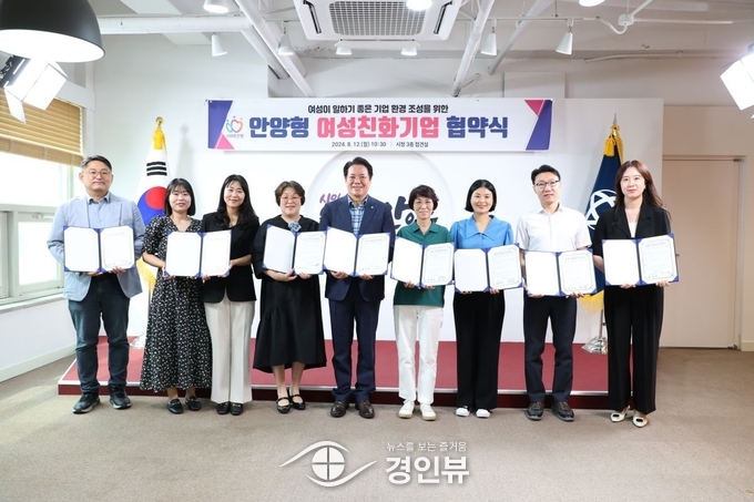안양시는 12일 오전 10시 30분 시청 접견실에서 근로자의 일·생활 양립과 성평등한 근무환경 조성에 노력하는 관내 기업 8곳과 ‘안양형 여성친화기업’ 협약을 체결했다.