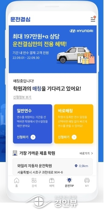 먼저 현대차는 메인 화면 구성 개편으로 한 화면에 연수 신청부터 운전 팁까지 한눈에 보기 쉽게 배치해 사용자 시인성을 높였고, 바로 매칭 기능을 신설해 3일 내 학원 일정에 공백이 발생하면 고객이 곧바로 연수를 신청할 수 있도록 했다. 특히 바로 매칭 기능은 학원 일정에 따라 2~3주 뒤부터 연수 신청이 가능했던 일반적 방식을 보완해 빠르게 연수받고 싶어 하는 고객의 수요를 충족시켜줄 수 있을 것으로 기대된다.