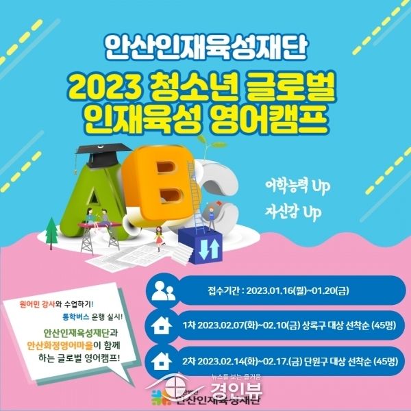 (경인뷰) 안산인재육성재단은 관내 청소년들의 글로벌 마인드를 함양하기 위해 ‘2023 청소년 글로벌 인재육성 영어캠프’ 참가자를 모집한다고 4일 밝혔다.