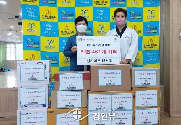 (경인뷰) 부평구 삼산2동은 지난 5일 지역 내 위치한 선라이즈태권도장으로부터 어려운 이웃을 위한 라면 461개를 전달받았다.