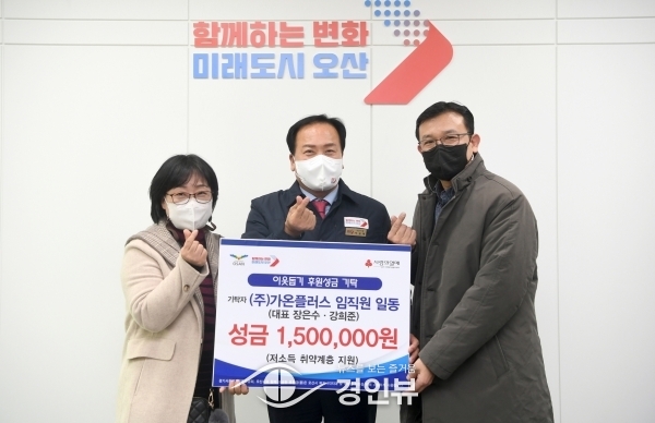 (경인뷰) 가온플러스가 지난 9일 오산시에 관내 취약계층 이웃들을 위해 써달라며 성금 150만원을 기탁했다.