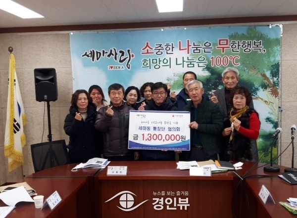 (경인뷰) 세마동 통장단협의회가 지난 16일 설 명절을 앞두고 지역사회의 어려운 이웃에게 써달라며 세마동에 성금 130만원을 기탁했다.