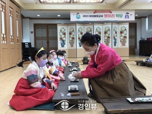 이날 프로그램은 유아 맞춤형 예절교육으로 공수법, 인사예절, 절하는 방법, 직접 만든 전통과자를 곁들여 차를 마시는 체험 등을 진행했다.