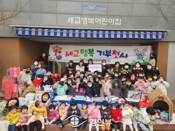 (경인뷰) 경기 오산시 가수동 LH12단지 내 위치한 시립세교행복어린이집이 지난 17일 지역의 어려운 이웃을 위해 사용해 달라며 어린이집 자체적으로 개최한 나눔 행사에서 모은 생필품 150여 점을 기부했다.