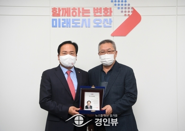 (경인뷰) 경기 오산시는 이권재 시장이 지역 소상공인들의 현안과 애로사항을 해결하는데 기여한 공로가 인정되어 소상공인연합회 중앙회가 주관하는 목민감사패를 받았다고 18일 밝혔다.