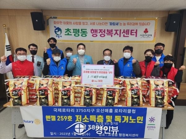 (경인뷰) 국제로타리클럽 3750지구 오산매홀로타리클럽이 설 명절 앞두고 취약계층에게 써달라며 지난 18일 초평동에 백미 38포를 기탁했다.