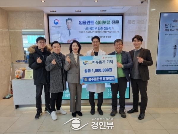 (경인뷰) 광주플란트치과의원은 지난 27일 광주시 경안동 행정복지센터를 방문, 어려운 이웃을 위해 사용해 달라며 이웃돕기 성금 100만원을 전달했다.