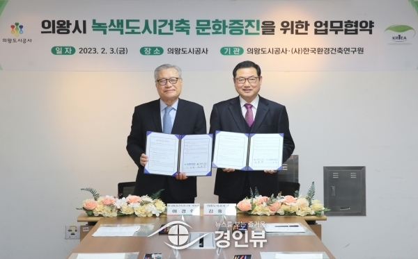 (경인뷰) 의왕도시공사는 지난 3일 의왕시 녹색 도시건축 및 첨단도시 발전을 위해 한국환경건축연구원과 업무협약을 체결했다고 밝혔다.