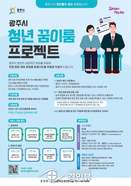 (경인뷰) 광주시는 구직 청년의 ‘취업 뽀개기’를 응원하기 위해 면접 정장 무료 대여 및 증명사진 무료 촬영을 지원하는 ‘꿈 이룸 프로젝트’를 진행한다고 9일 밝혔다.