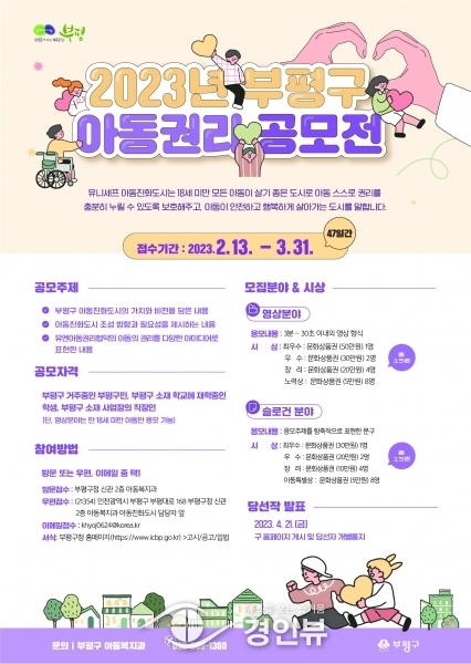 (경인뷰) 부평구가 오는 3월 31일까지 2023년 부평구 아동권리 공모전을 실시한다.