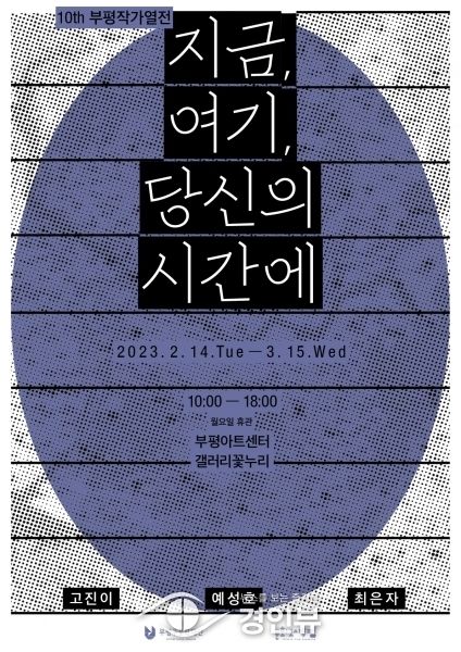 (경인뷰) 부평구 문화재단이 오는 3월 15일까지 부평아트센터 갤러리 꽃누리에서 열 번째 부평작가열전 ‘지금, 여기, 당신의 시간에’를 진행한다.