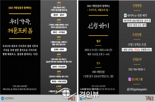 (경인뷰) 인천광역시는 1883개항살롱에서 3월부터 4월까지 2개월에 걸쳐 인천 시민을 대상으로 ‘우리가곡, 제물포의 봄’프로그램을 진행한다고 밝혔다.