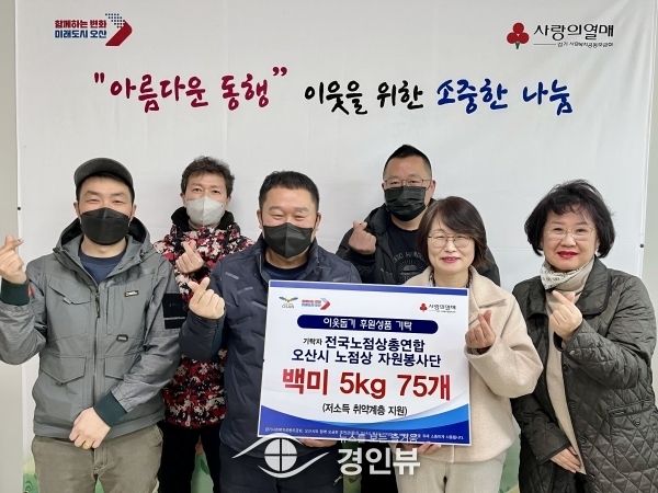(경인뷰) 오산시는 지난 2일 전국노점상총연합 오산시 노점상 자원봉사단이 시청을 방문해 백미 5kg 75개를 기탁했다고 밝혔다.