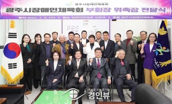 (경인뷰) 광주시장애인체육회는 지난 8일 광주시장애인체육인 육성과 지원을 위한 조직 완전체 구성을 위해 최광춘 부회장 등 10명의 부회장단을 임명했다.