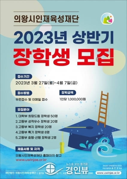 (경인뷰) 의왕시인재육성재단에서 2023년 상반기 장학생을 모집한다.
