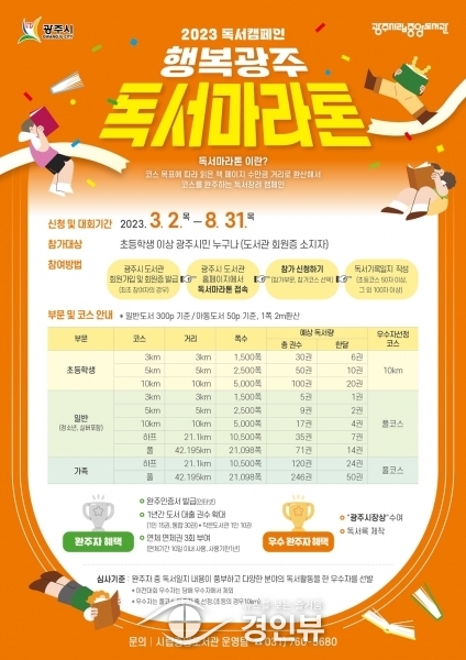(경인뷰) 광주시는 도서관 주최의 독서 장려 캠페인 ‘광주IN 독서산책’을 올해부터 ‘행복광주 독서마라톤’으로 새롭게 단장하고 시민들을 맞이한다고 13일 밝혔다.