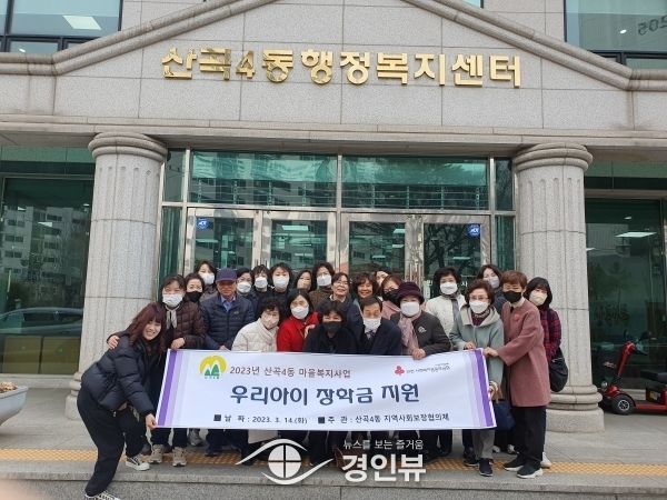 (경인뷰) 부평구 산곡4동 지역사회보장협의체는 지난 14일 저소득가정 초·중·고 신입생 10명에게 장학금을 지원했다.