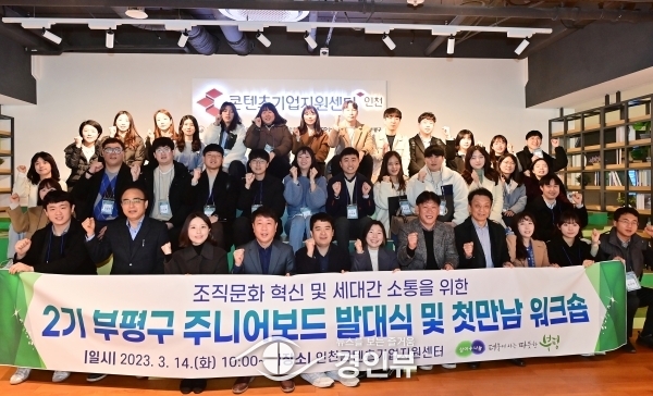 (경인뷰) 부평구는 지난 14일 청천동 콘텐츠기업 지원센터에서 2기 부평구 주니어보드 발대식을 열고 본격적인 조직문화 소통을 시작했다.