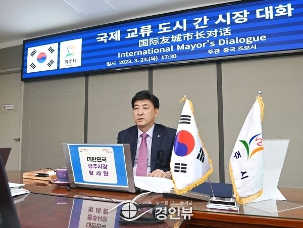(경인뷰) 광주시는 지난 23일 국제 자매도시인 중국 즈보시 등 5개 도시가 참석한 가운데 ‘국제교류 우수사례 및 친환경 분야 정책 공유’를 주제로 온라인 영상회의를 가졌다.
