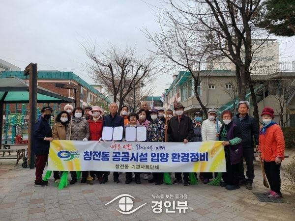 (경인뷰) 창전동노인회와 창전동행정복지센터는 지난 24일 샛별공원에서 깨끗한 공원환경 조성을 위한 입양 협약식을 체결하고 환경 정비 활동을 진행했다.