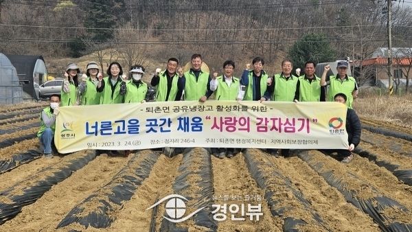 (경인뷰) 광주시 퇴촌면 지역사회보장협의체는 지난 24일 퇴촌면 정지리에서 ‘사랑의 감자 심기’ 행사를 가졌다.