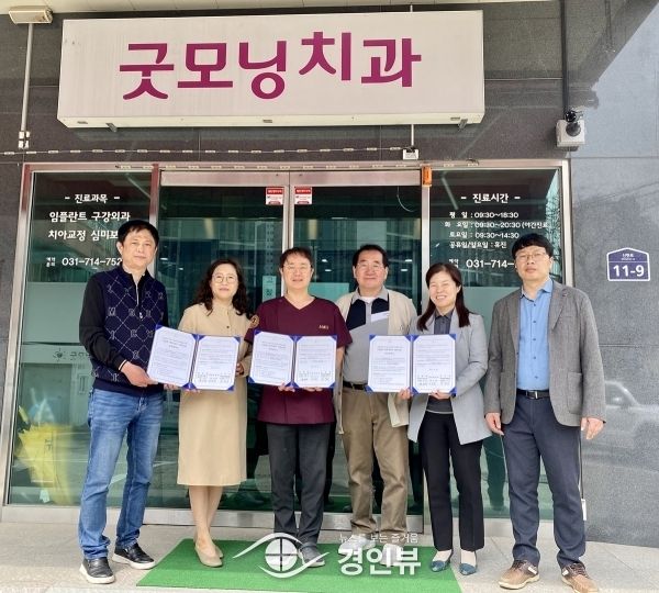 (경인뷰) 광주시 신현동 지역사회보장협의체는 지난 27일 신현동 소재 굿모닝치과 조옥환 원장과 ‘이튼튼 치과치료비 지원사업’ 업무협약을 체결했다.